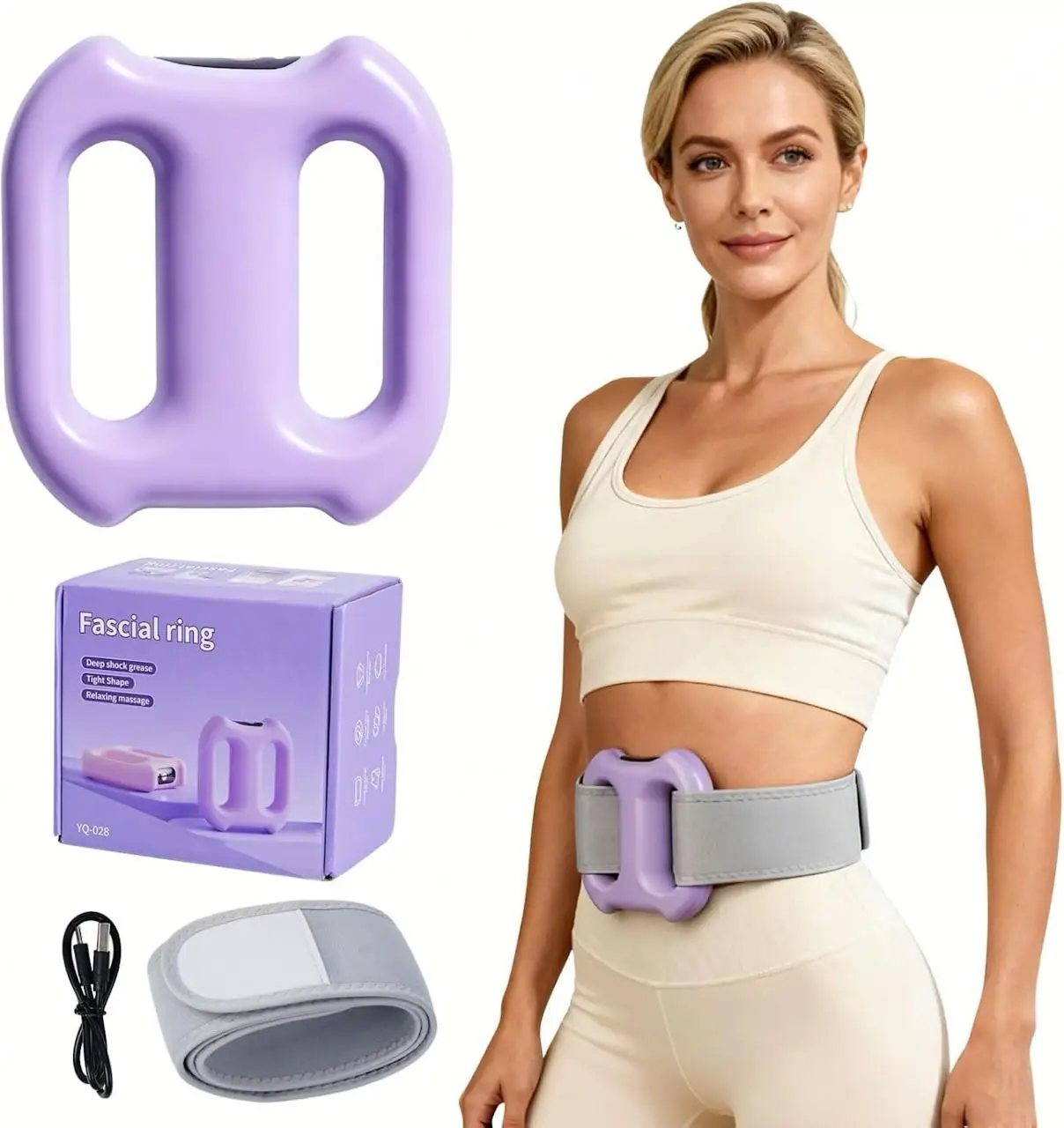 Its ergonomic ring design with adjustable strap allows easy use on different body parts like waist, legs, neck, and arms. The wireless rechargeable feature ensures complete portability, so you can use it anytime, anywhere.